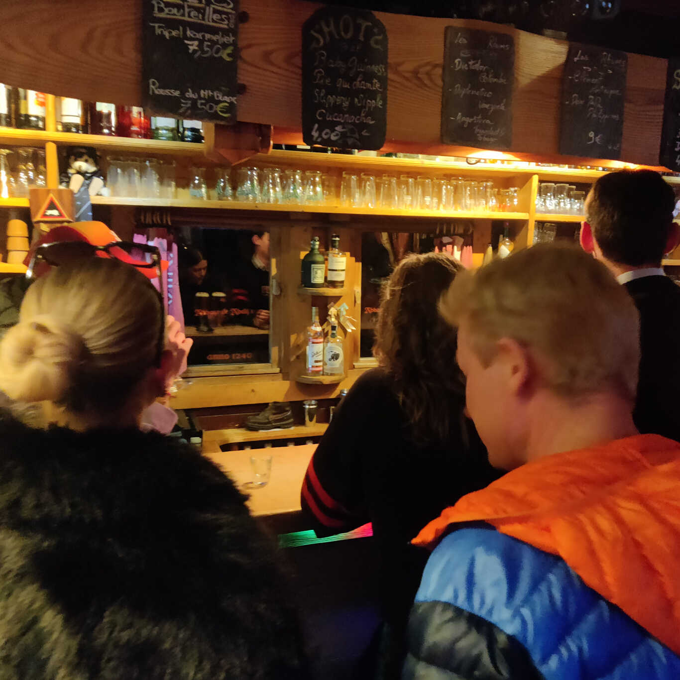 Auberge Du Télé (under den første gondol) Afterski og røverhistorie…